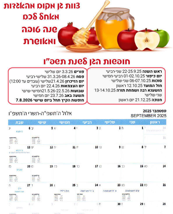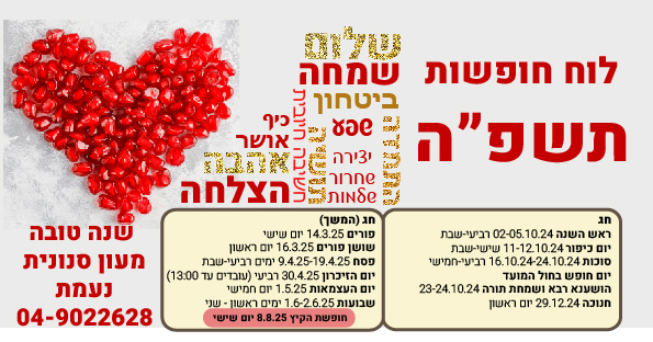 לוחות שנה / טבלת חופשות החל מ 11 שח