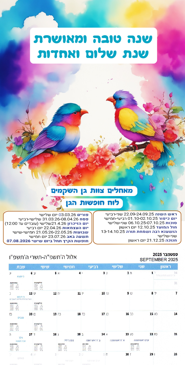 לוח שנה A4 מגנט חופשות 15 שח