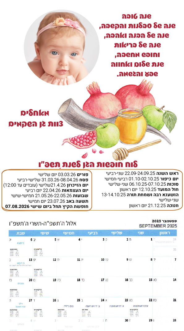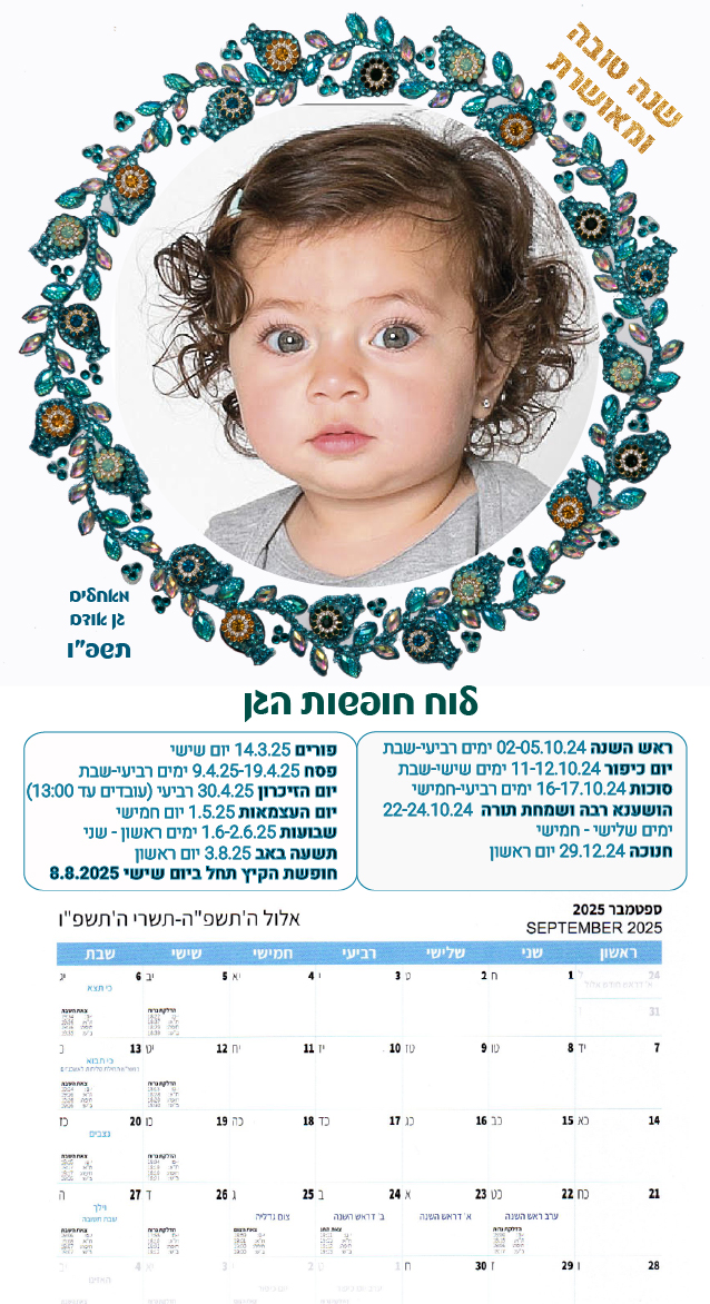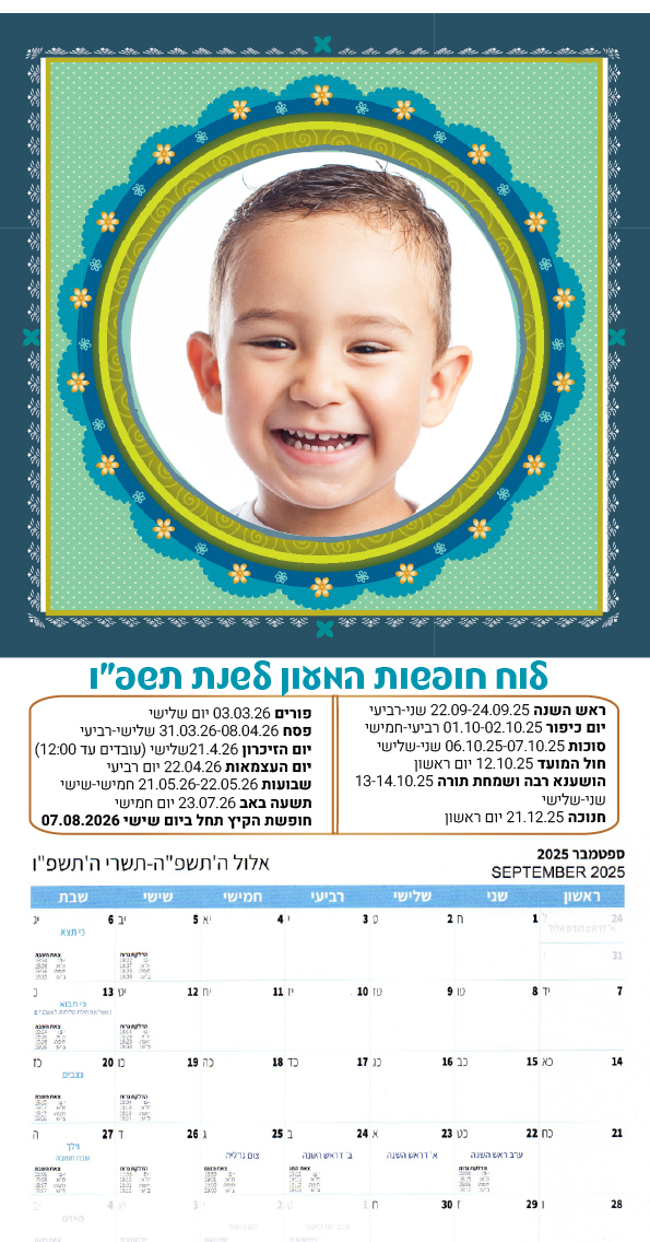 לוחות שנה גדולים עם תמונת הילד/ה 23 שח