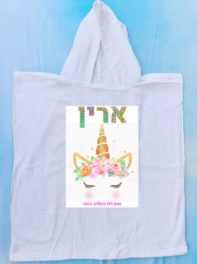 מגבת פונצ'ו 100% כותנה עם שם 38-42 שח