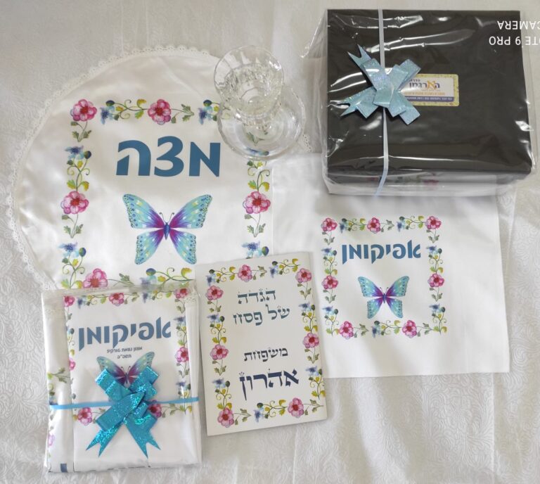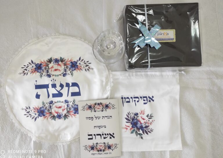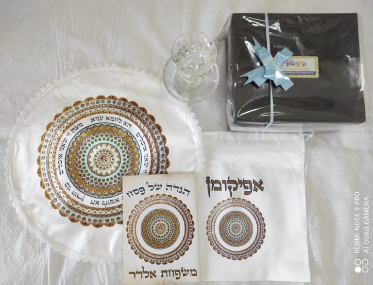 כוס קידוש מקריסטל מפת שולחן דוחה כתמים ונוזלים כיסוי מצה מהודר עגול מסאטן ל 3 מצות שקית אפיקומן סאטן תואמת אפשרות להוספת הגדה של פסח