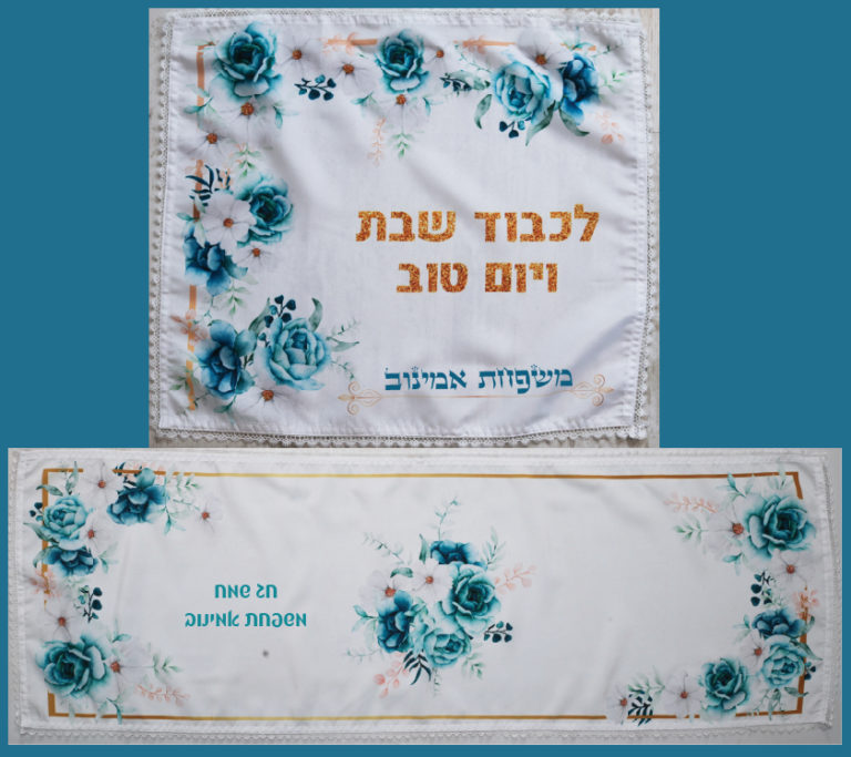 ראנר בגודל 120X40 סמ כביס מבד איכותי אל-קמט עם שול תחרה לבן עם כיסוי חלה תואם בגודל 40X55 סמ