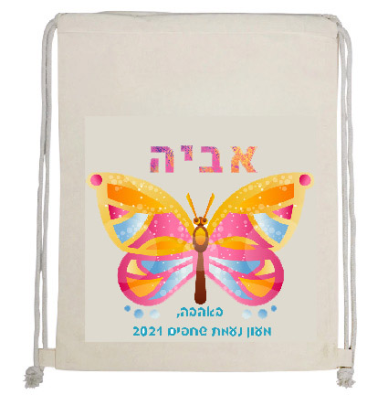 תיק שרוכים מבד קנבס, מודפס עם עיצוב שם הילד/ה