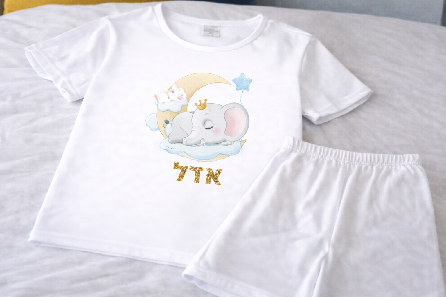 פיג'מה (מכנס קצר וחולצה קצרה) רכה ואיכותית מודפסת עם שם הילד/ילדה
