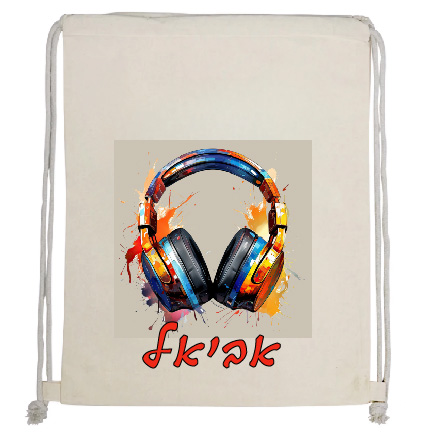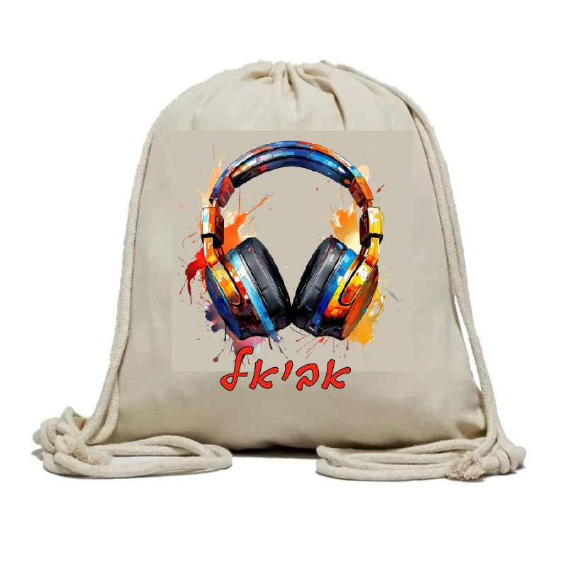 תיק שרוכים מבד קנבס, מודפס עם עיצוב שם הילד/ה