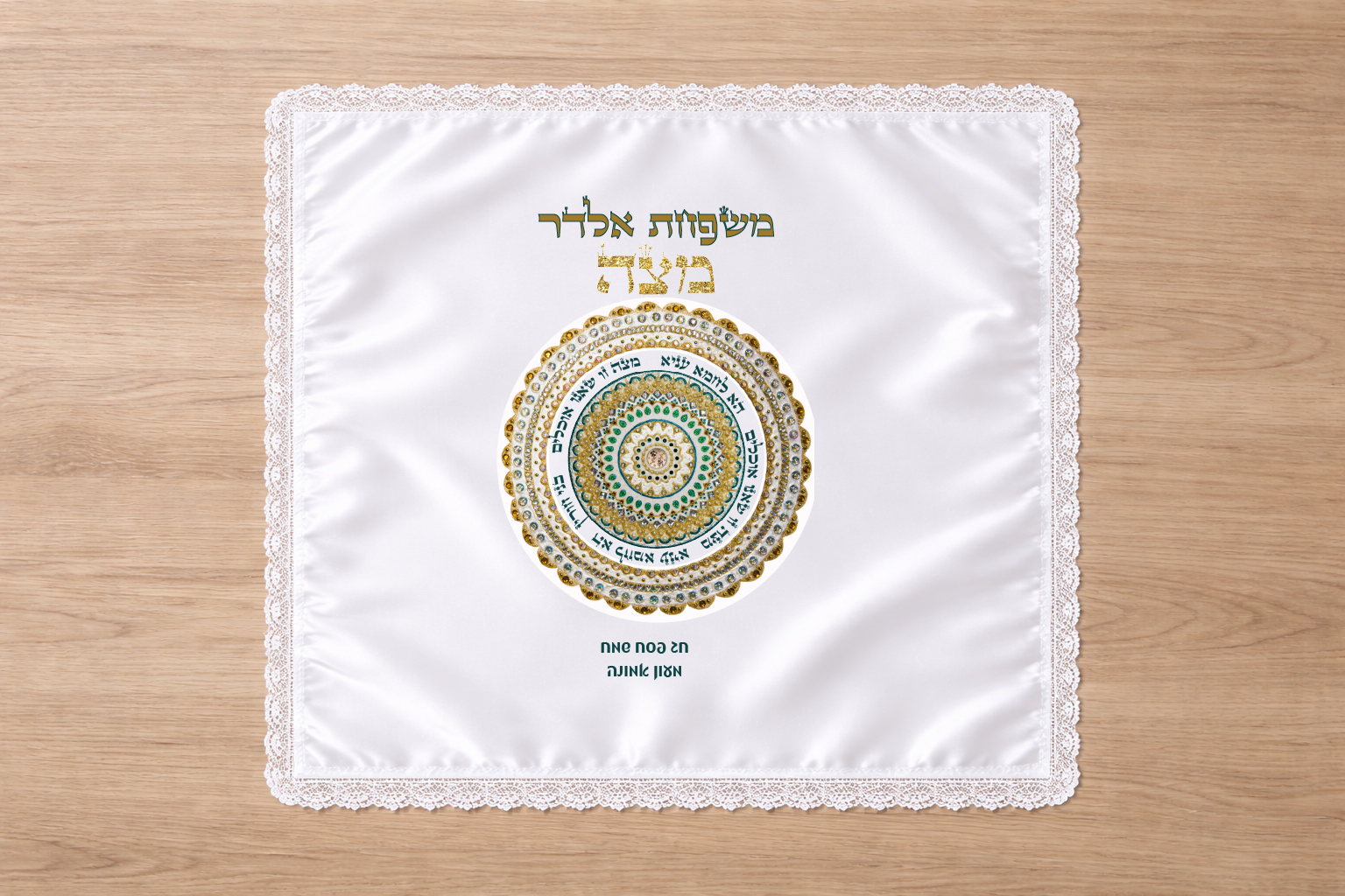 כיסוי מצה מסאטן עבה בגודל 40X50 ס"מ (חד שכבתי) עם שול תחרה לבנה או זהב