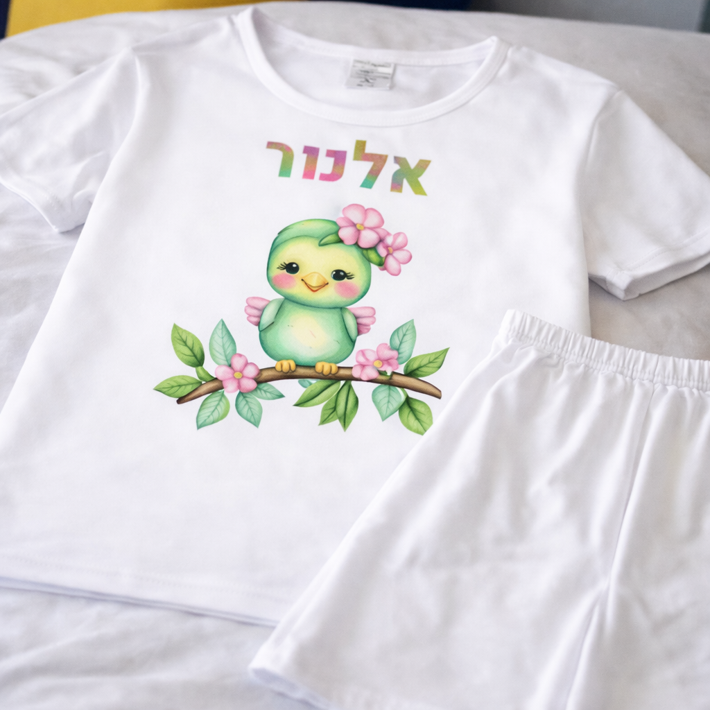 פיג'מה (מכנס קצר וחולצה קצרה) רכה ואיכותית מודפסת עם שם הילד/ילדה