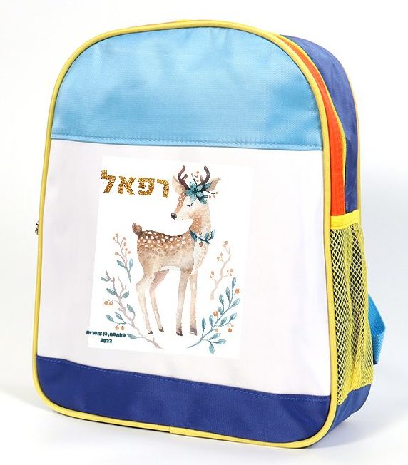 תיק גב צבעוני ושמח לילדי גן – בלעדי לסדרת הארגמן – עם הדפסה בגודל 4A