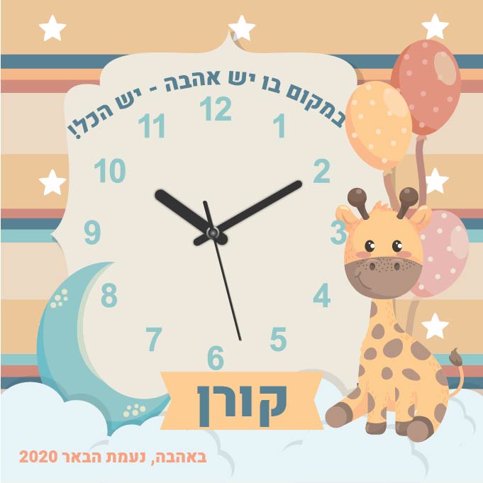 שעון קיר אישי עם שם הילד/ה,