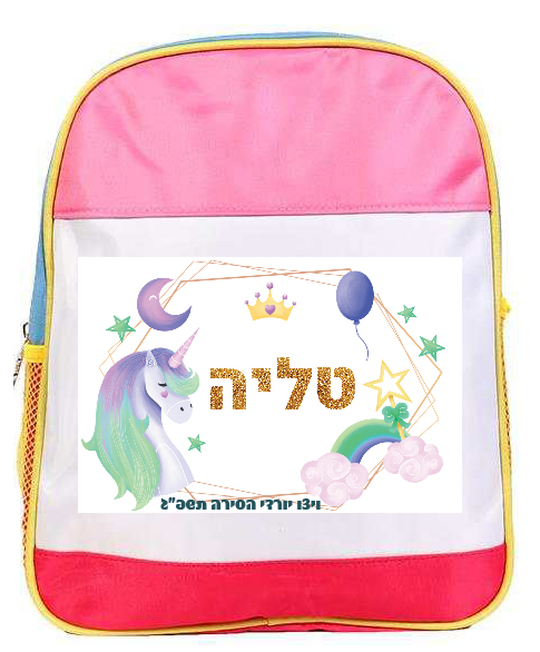 תיק גב צבעוני ושמח לילדי גן – בלעדי לסדרת הארגמן – עם הדפסה בגודל 4A