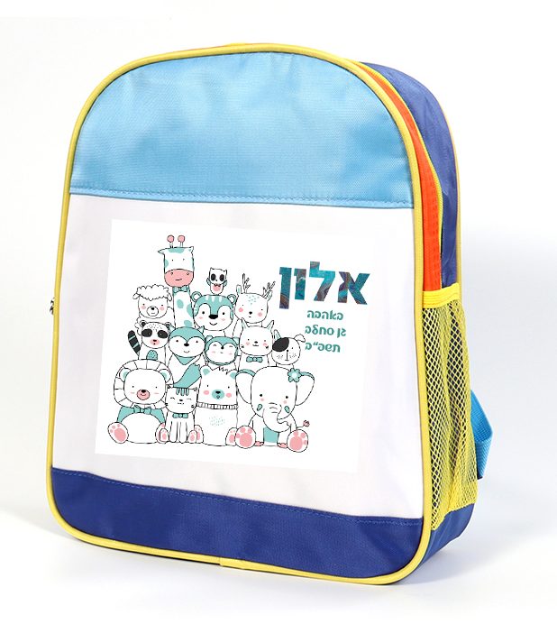 תיק גב צבעוני ושמח לילדי גן – בלעדי לסדרת הארגמן – עם הדפסה בגודל 4A