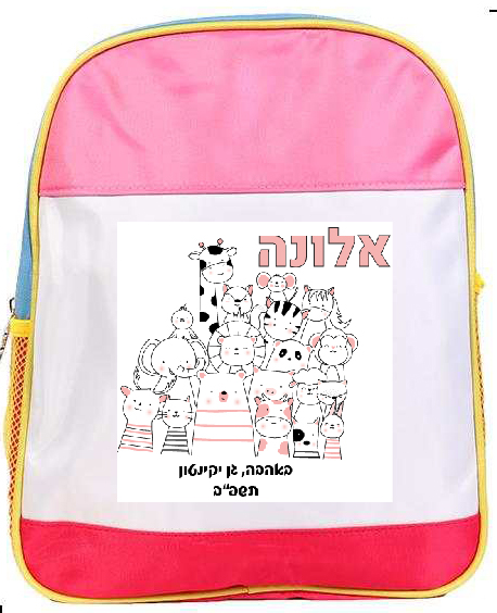תיק גב צבעוני ושמח לילדי גן – בלעדי לסדרת הארגמן – עם הדפסה בגודל 4A