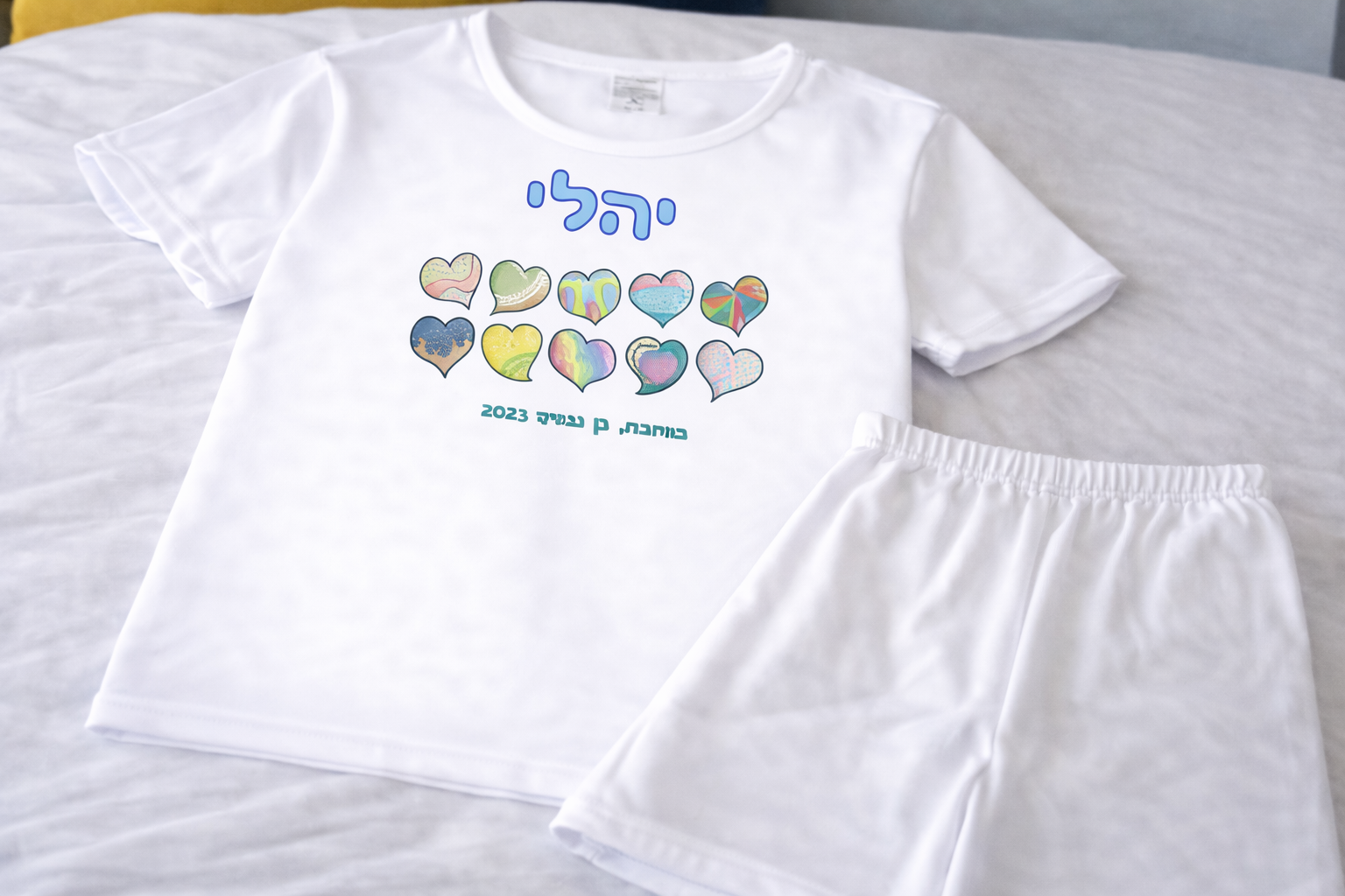 פיג'מה (מכנס קצר וחולצה קצרה) רכה ואיכותית מודפסת עם שם הילד/ילדה