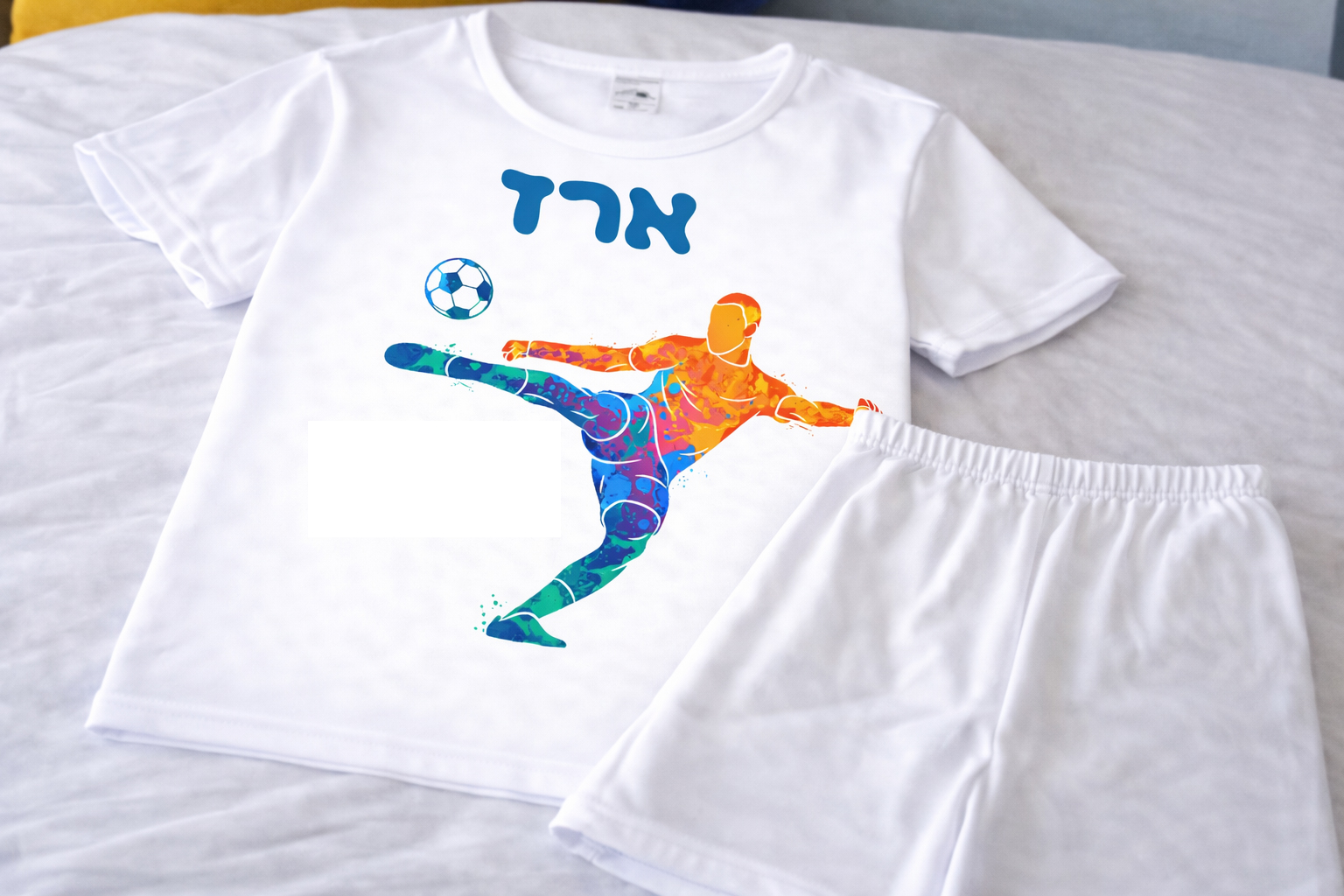 פיג'מה (מכנס קצר וחולצה קצרה) רכה ואיכותית מודפסת עם שם הילד/ילדה