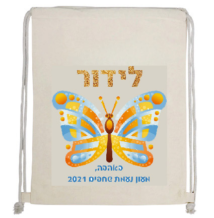 תיק שרוכים מבד קנבס, מודפס עם עיצוב שם הילד/ה