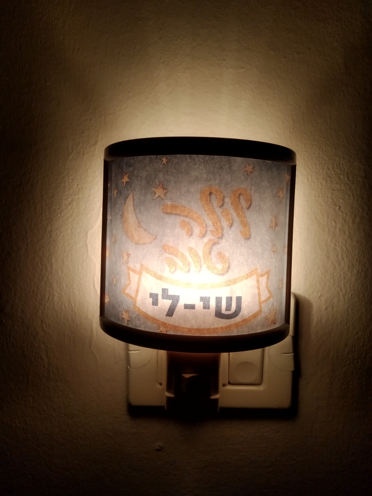 מנורת לילה עם נורה מורכבת, מוכנה להפעלה.