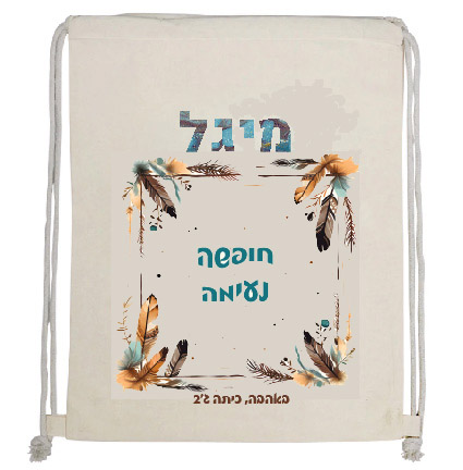 תיק שרוכים מבד קנבס, מודפס עם עיצוב שם הילד/ה