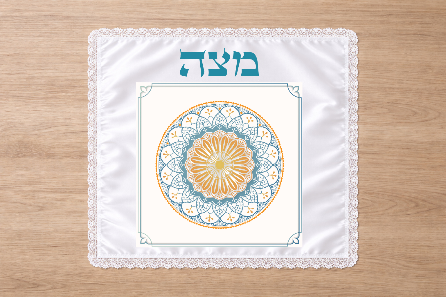 כיסוי מצה מסאטן עבה בגודל 40X50 ס"מ (חד שכבתי) עם שול תחרה לבנה או זהב