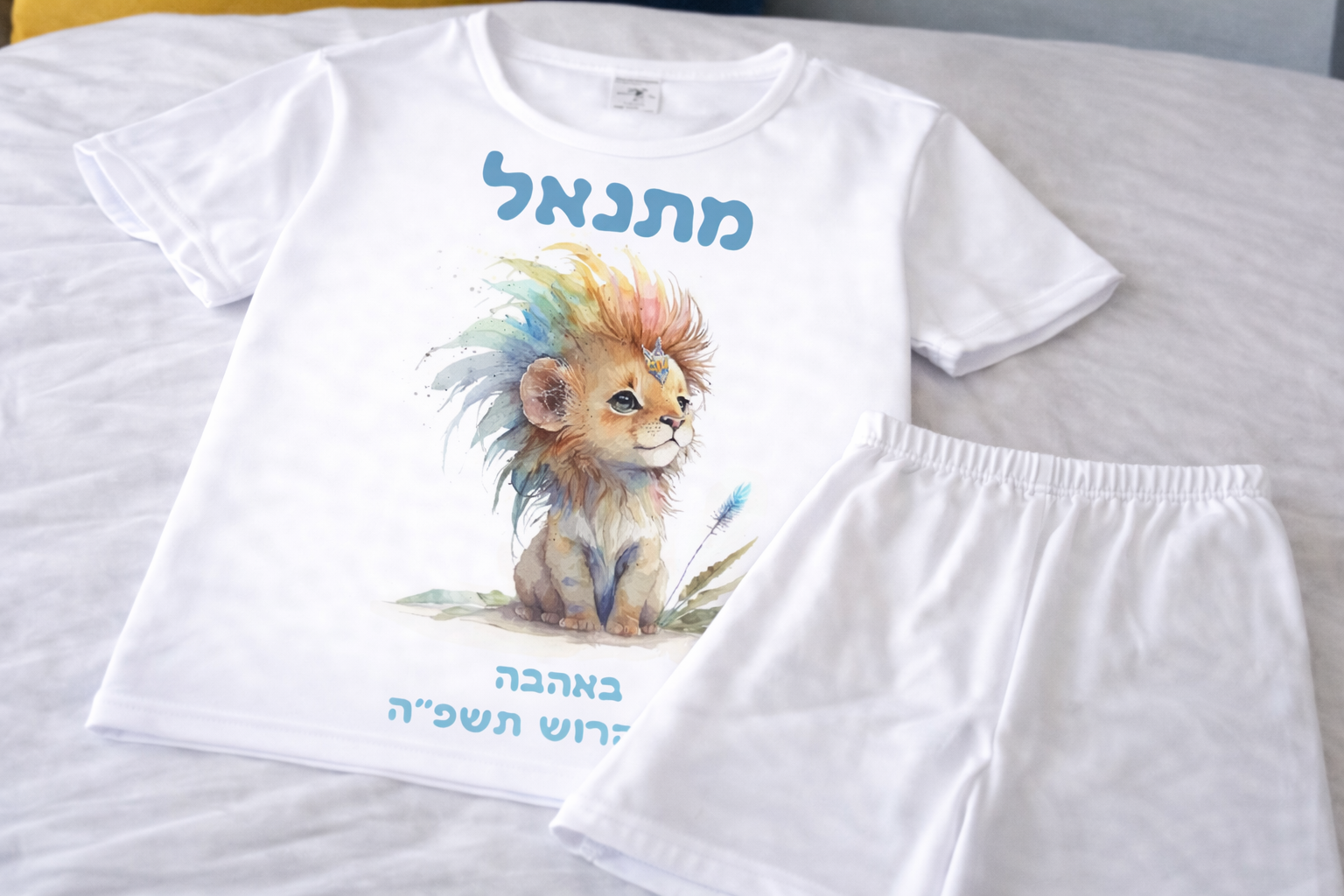 פיג'מה (מכנס קצר וחולצה קצרה) רכה ואיכותית מודפסת עם שם הילד/ילדה