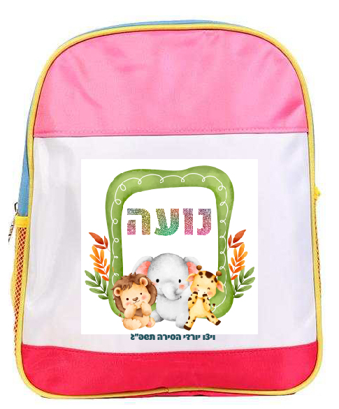 תיק גב צבעוני ושמח לילדי גן – בלעדי לסדרת הארגמן – עם הדפסה בגודל 4A