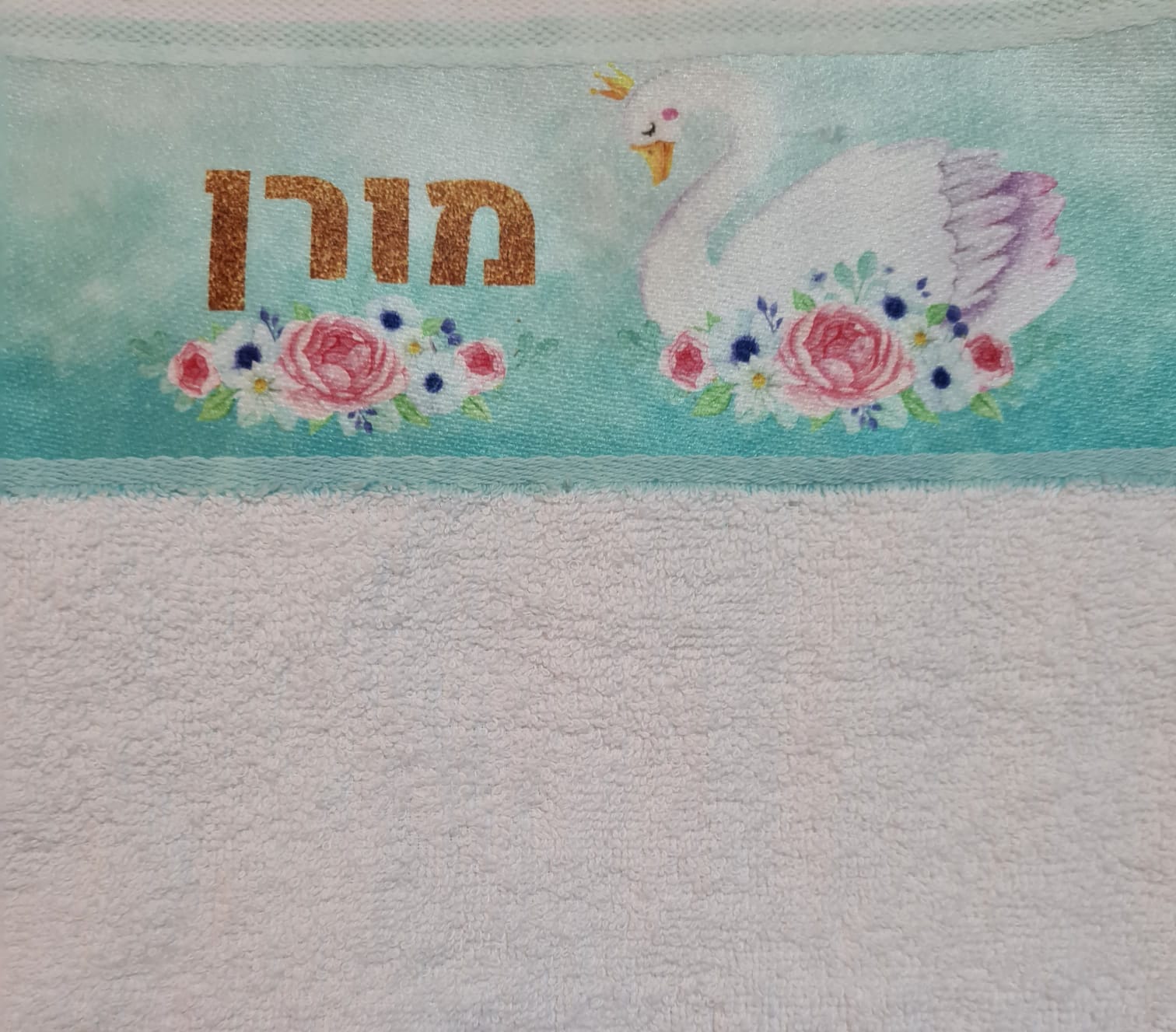מגבת רחצה איכותית 100% כותנה בגודל 130X70 ס"מ מודפסת עם שם / גודל ההדפסה 10X30 ס"מ