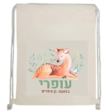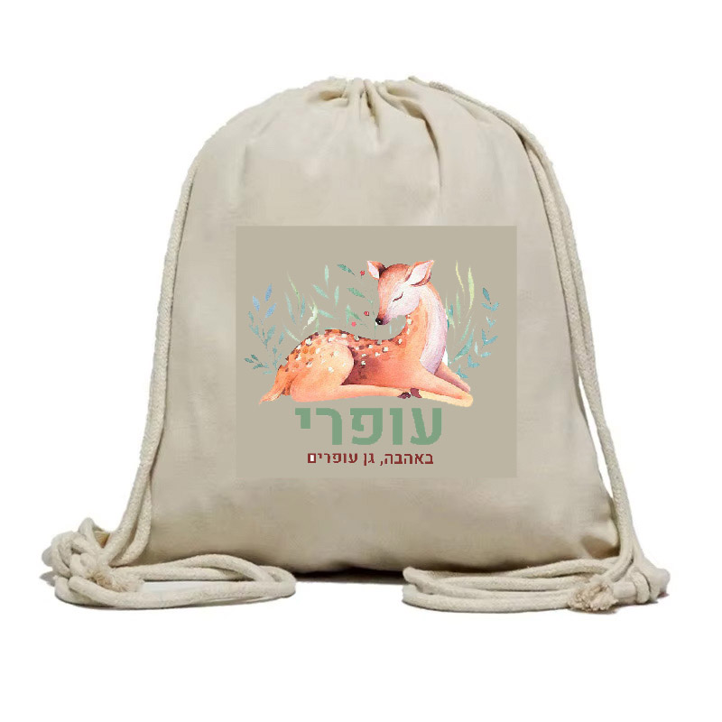 תיק שרוכים מבד קנבס, מודפס עם עיצוב שם הילד/ה