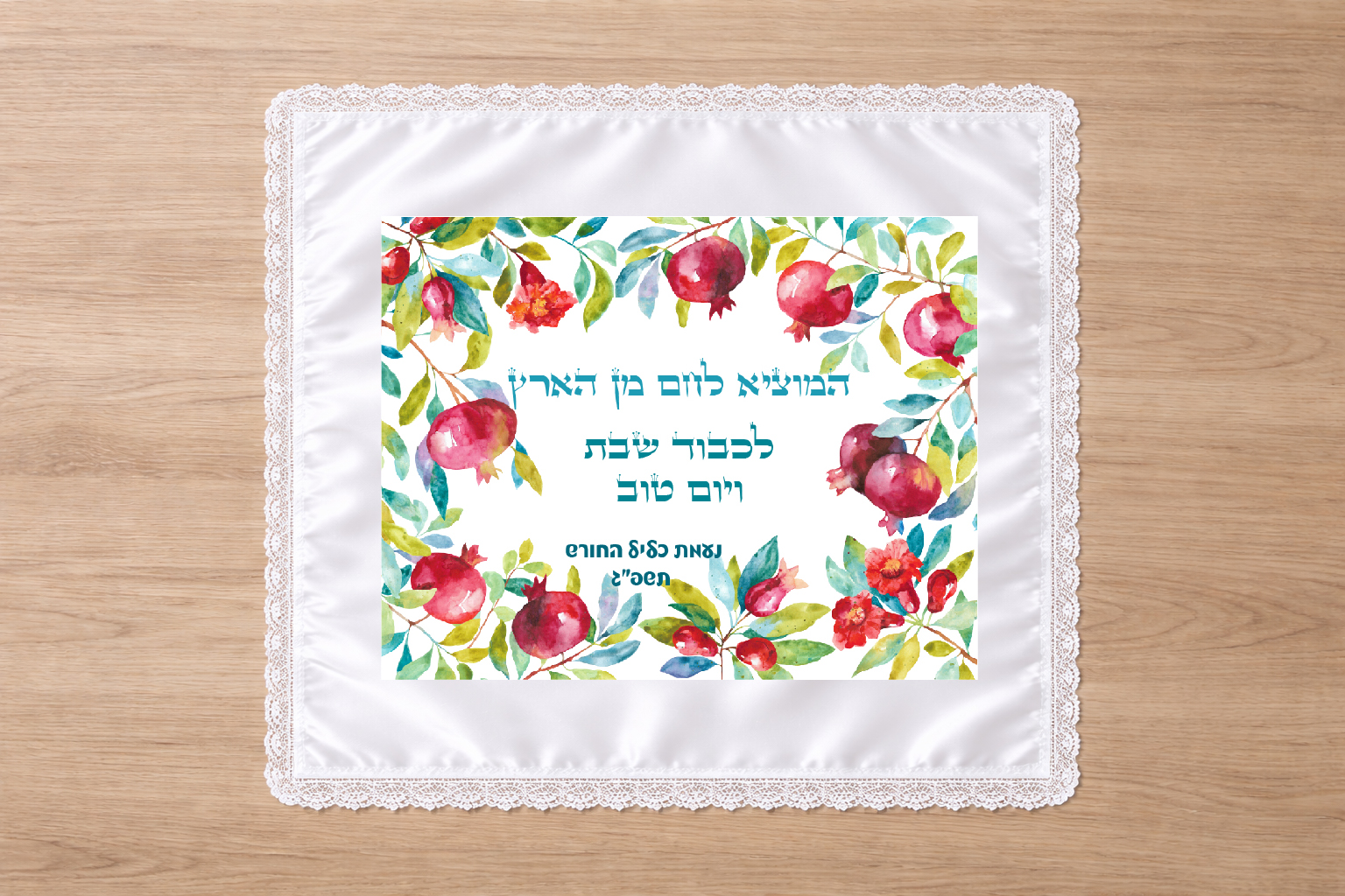 כיסוי חלה איכותי, גדול ומהודר מסאטן לבן עם שול תחרה לבן