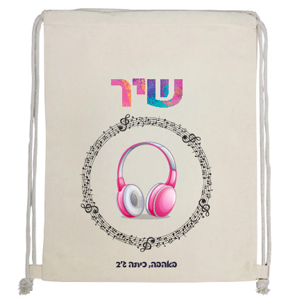 תיק שרוכים מבד קנבס, מודפס עם עיצוב שם הילד/ה