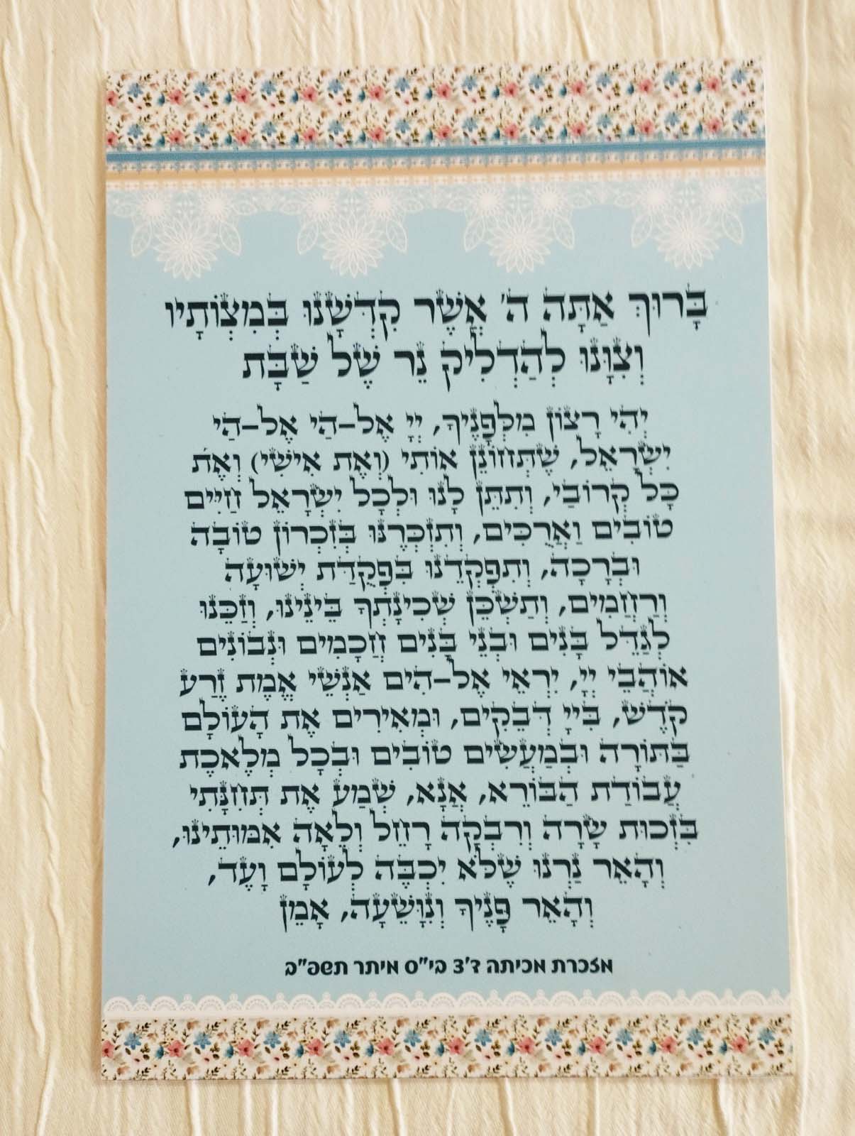 סדר הדלקת נרות מעוצב כתמונה לתליה על קיר