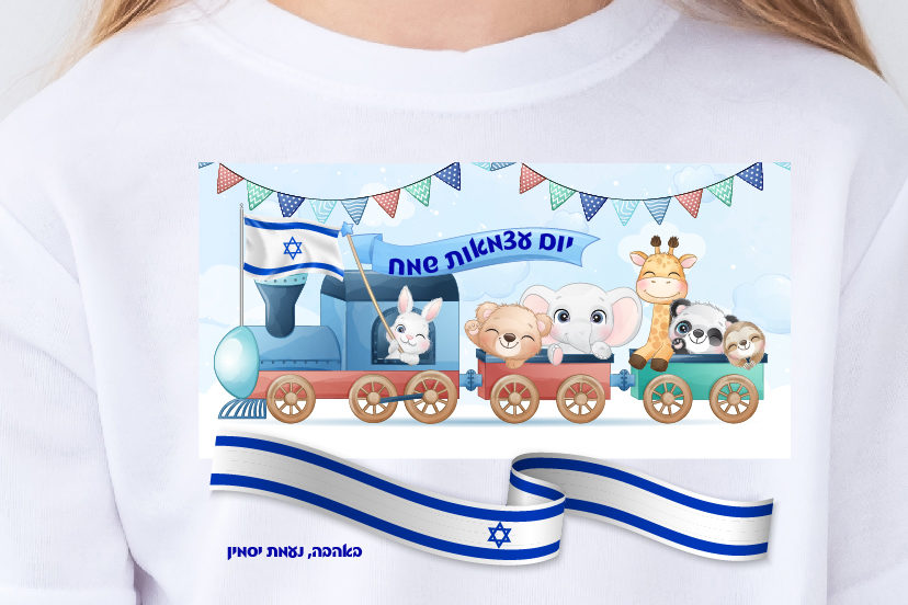 חולצה איכותית ורכה עם אחוז כותנה גבוה, מודפסת עם שם הילד/ה והקדשה מהמעון / מהגן במידות 2-6 (מידות סטנדרטיות לא קטנות)