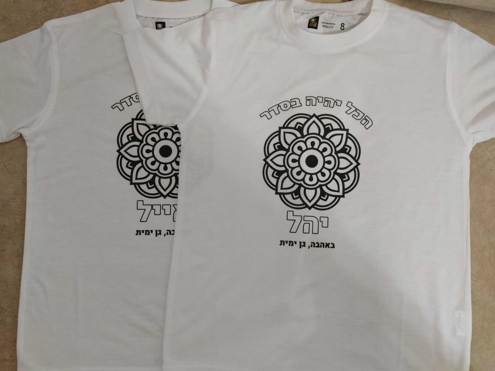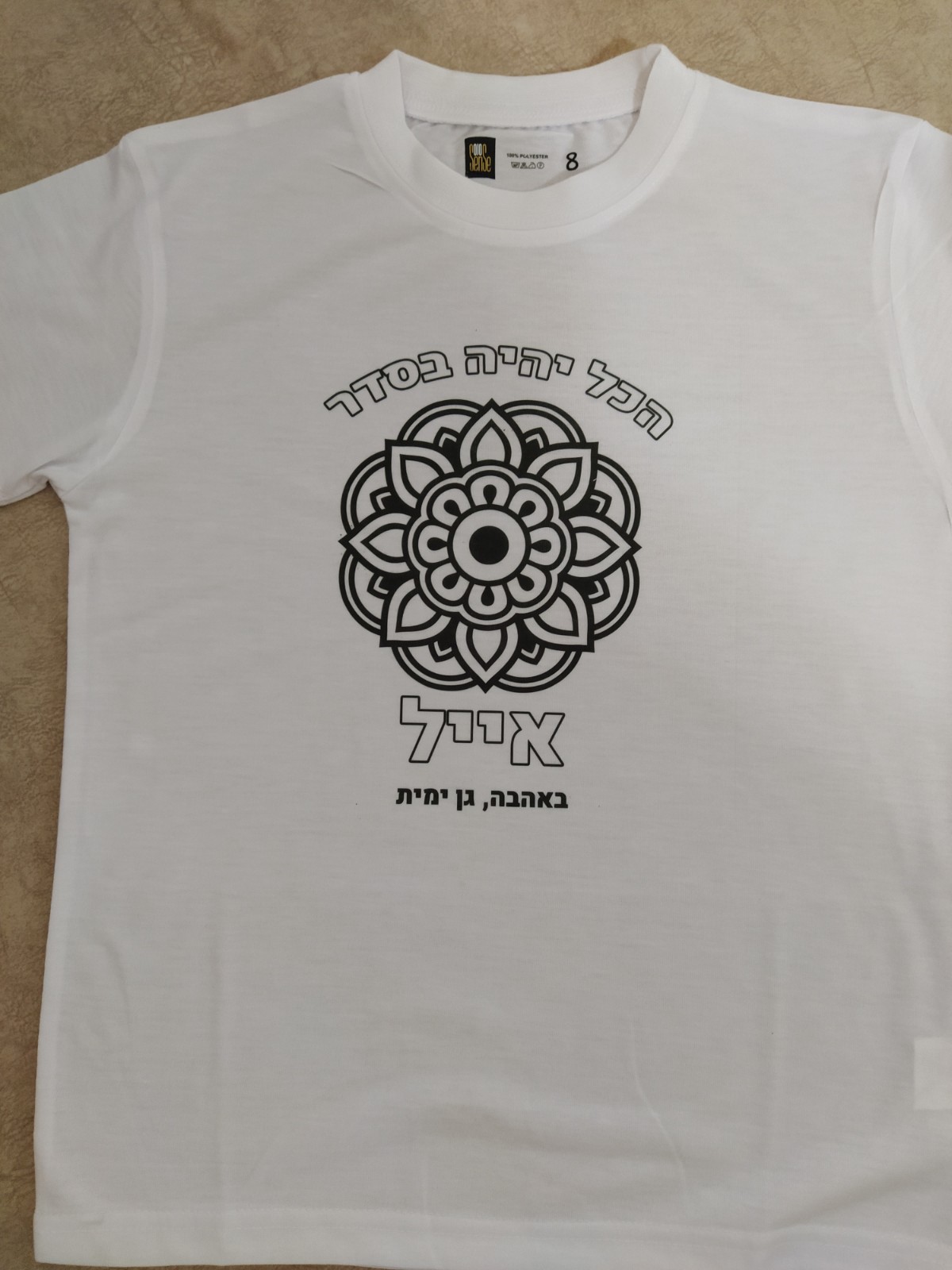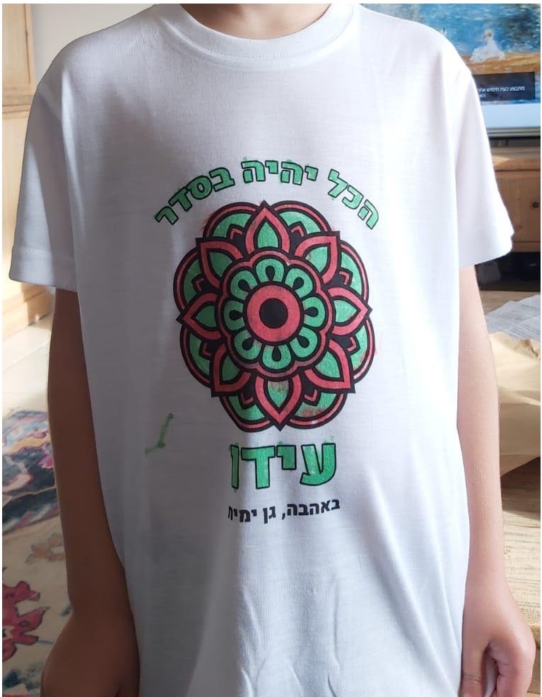 חולצה נעימה מודפסת עם שמות הילדים והקדשה מהגן / מהמעון (לא מדבקה) עם שם הילד/ה