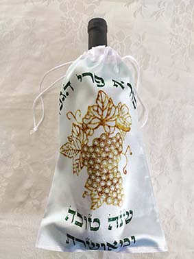 שקית סאטן לבנה בגודל 20X30 ס"מ עם שרוך סגירה, לכיסוי בקבוק יין קידוש בשולחן החג