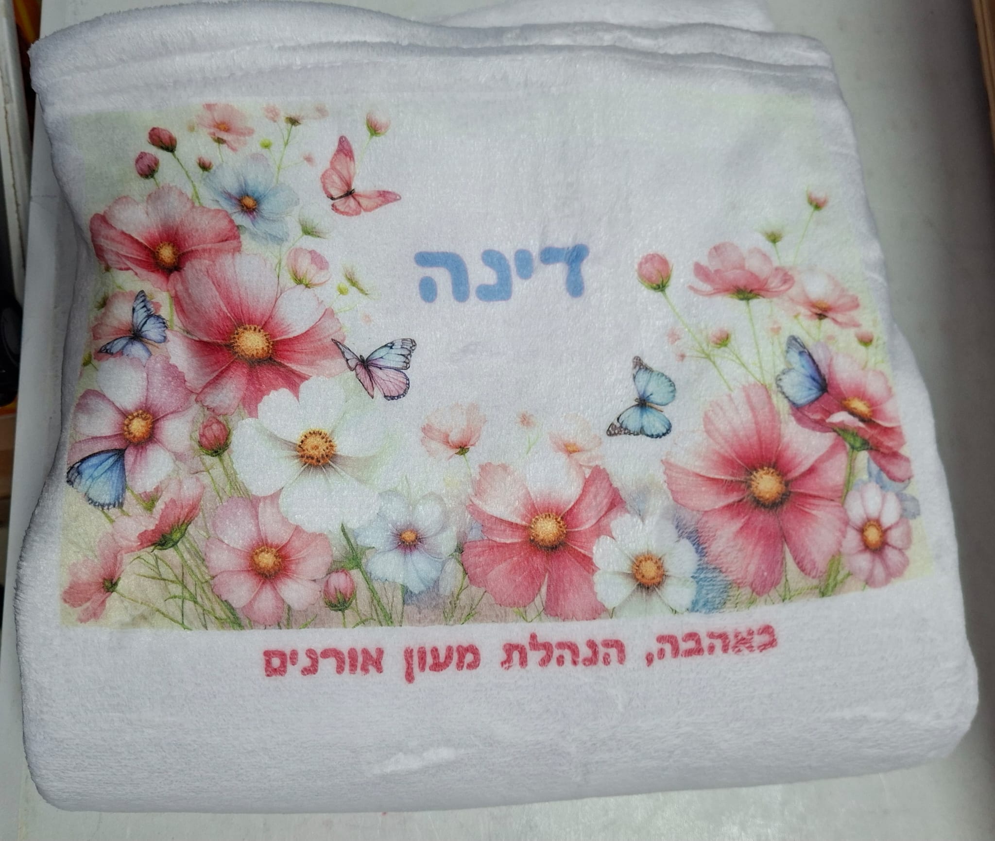 שמיכי רכה לבנה עם שם 33 שח