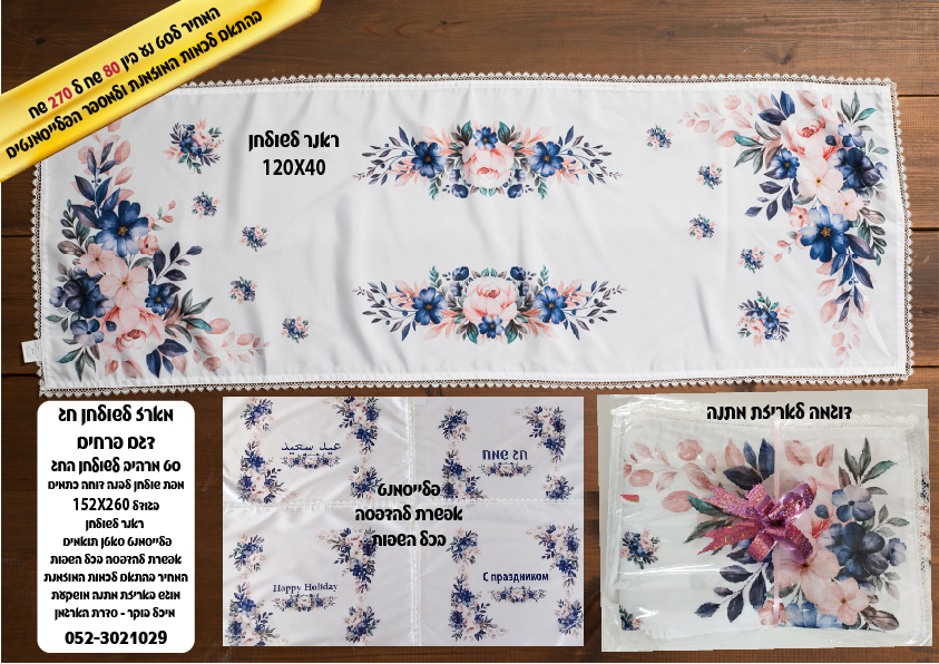 ראנר לשולחן חג וכיסוי חלה תואם