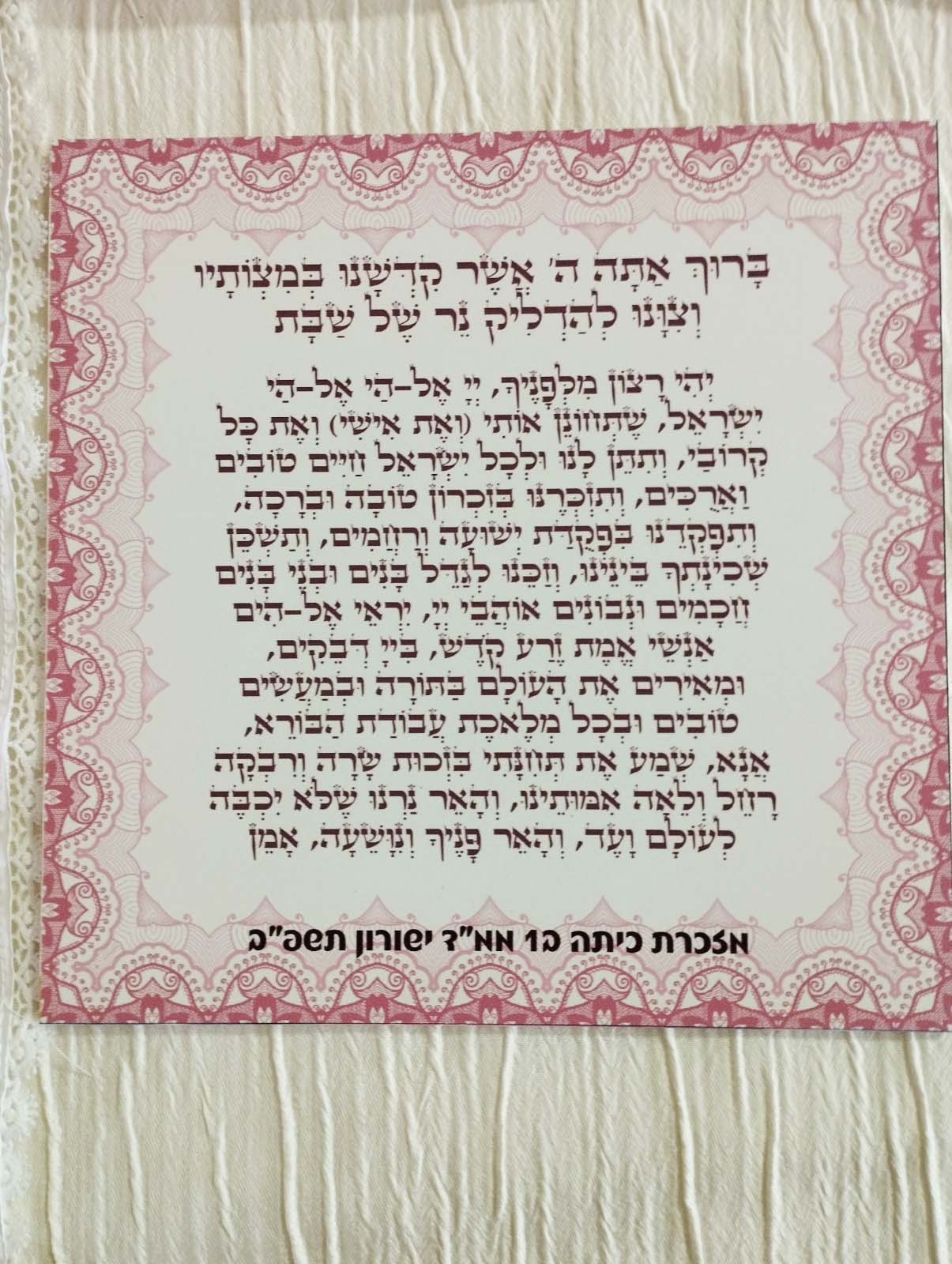 נוסח הדלקת נרות בלמינציה, גודל A4
