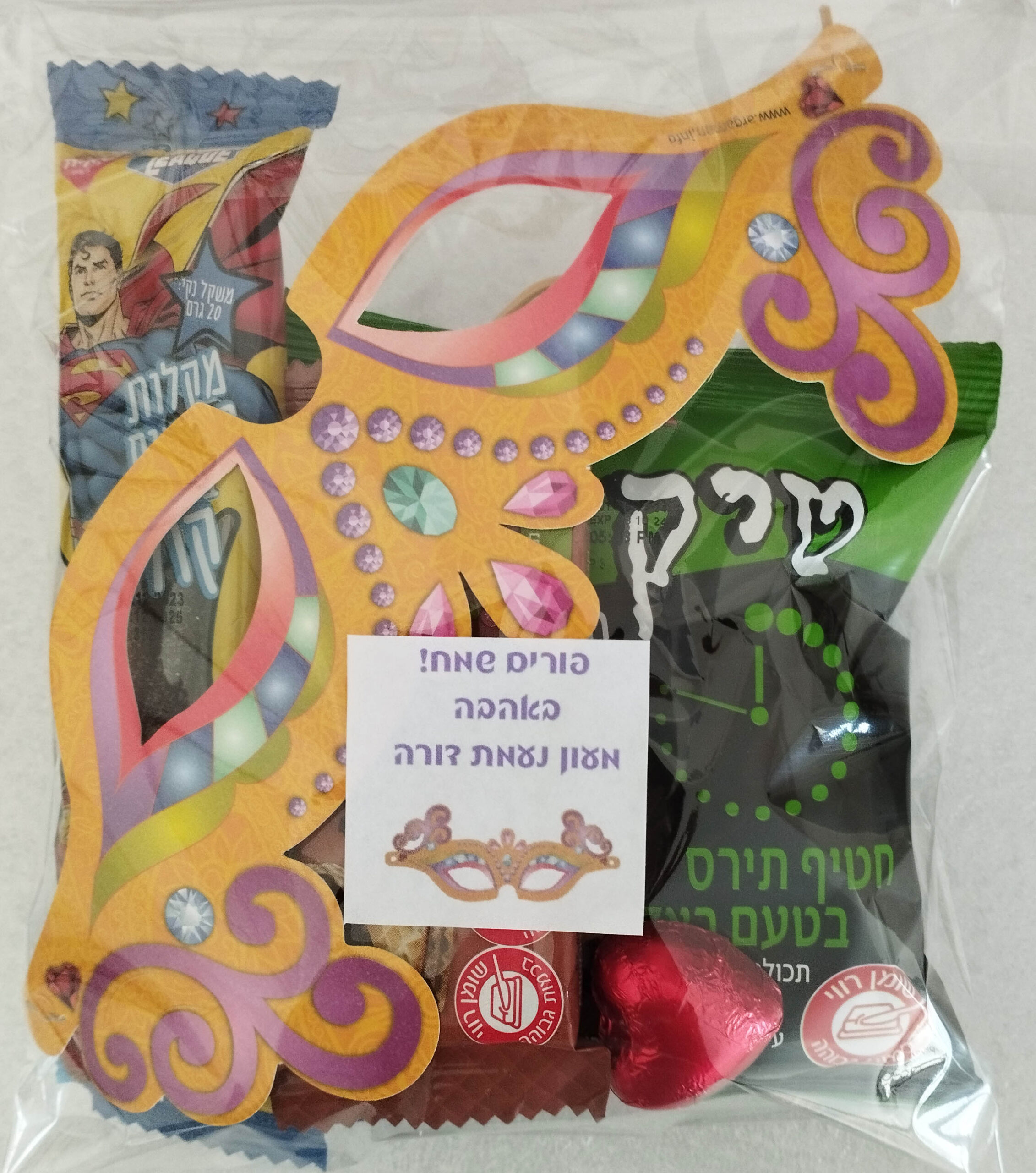 מארז מתנה לפורים בשקית צלופן הכולל: