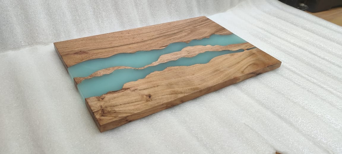 מארז קרש חיתוך מעץ טבעי בשילוב טורקיז ים + סכין נירוסטה איכותי עם ידית עץ .