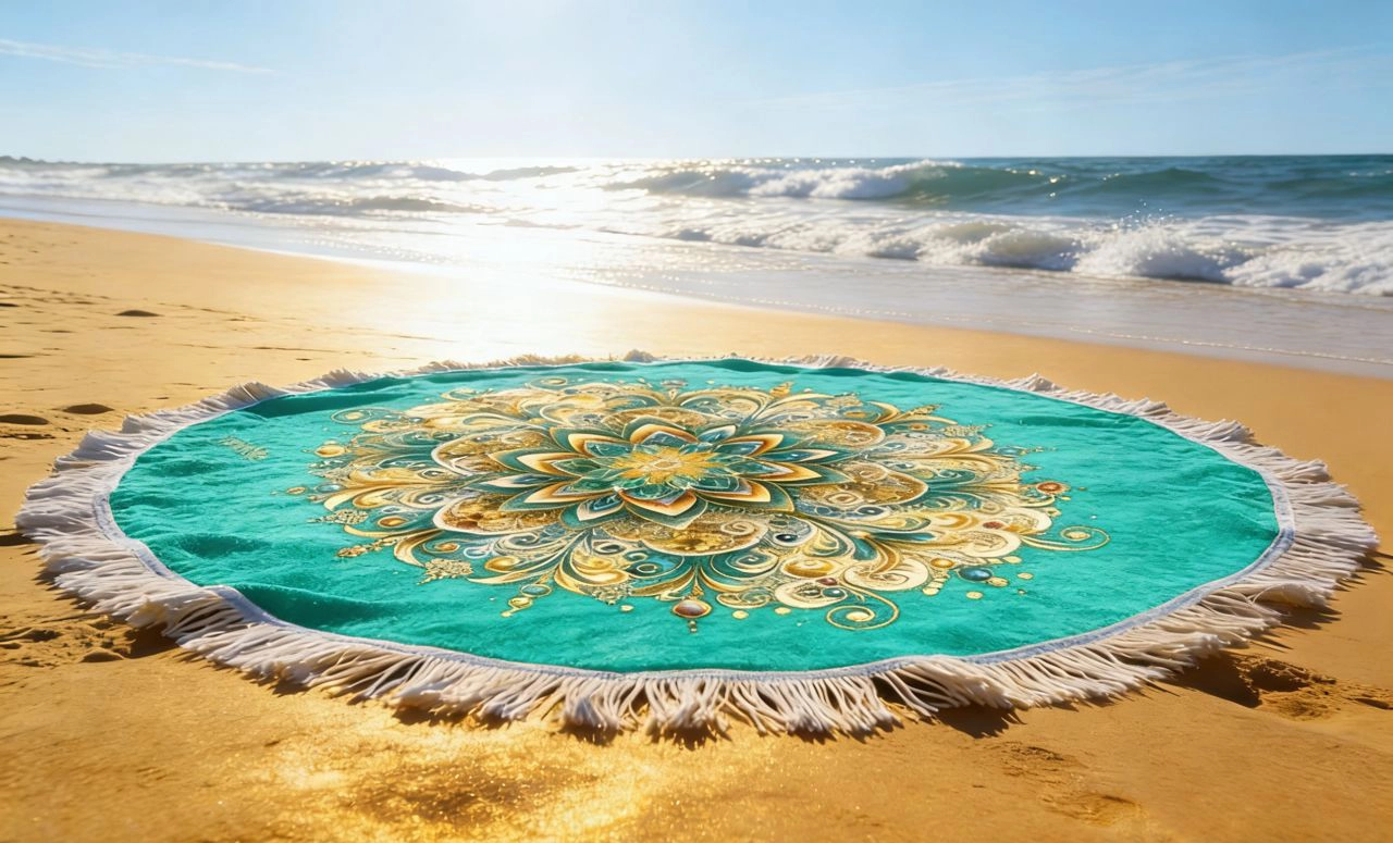מגבת חוף גדולה בקוטר 150 ס"מ עם אפשרות להוספת מיתוג מוגשת באריזת מתנה!