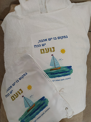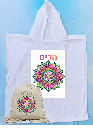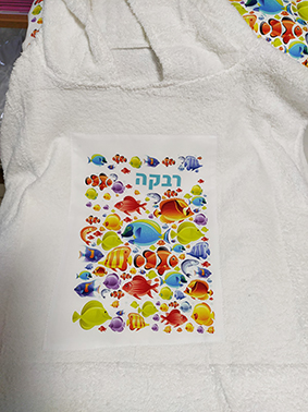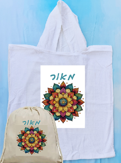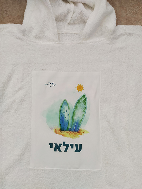 גודל שטח ההדפסה על כל אחד מהמוצרים: 4A. הפונצ'ו מתאים עד גיל 5, ותלוי בגובה הילד/ה.