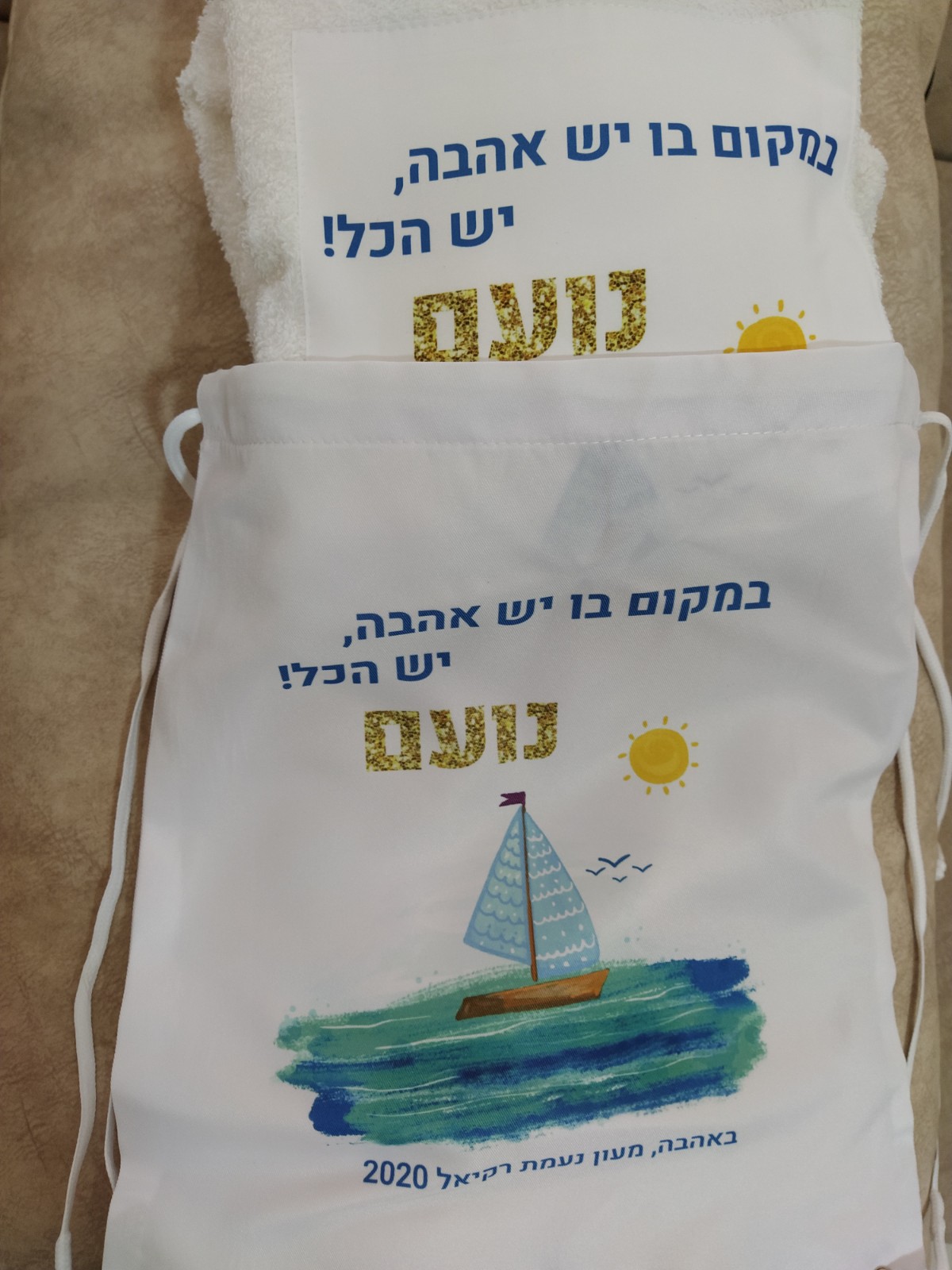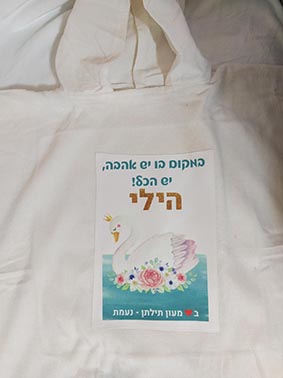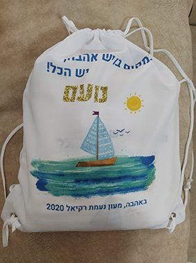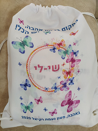 הדפסה של עיצוב עם שם הילד/ה+תיק שרוכים איכותי מקנבס בהדפסה תואמת