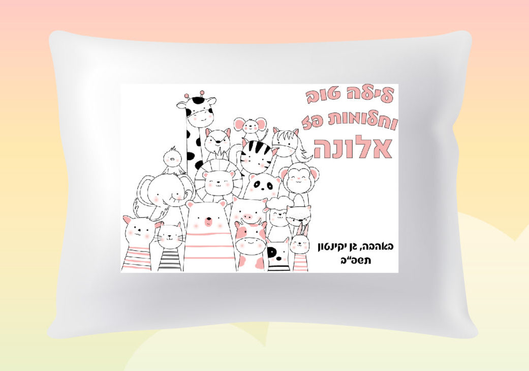 מתאים למיטת יחיד בגודל 2.00 מטר על 95 ס"מ רוחב + ציפית לכרית בגודל 50 על 70 ס"מ עם הדפסת עיצוב ושם הילד/ה על הכרית בגודל 4
