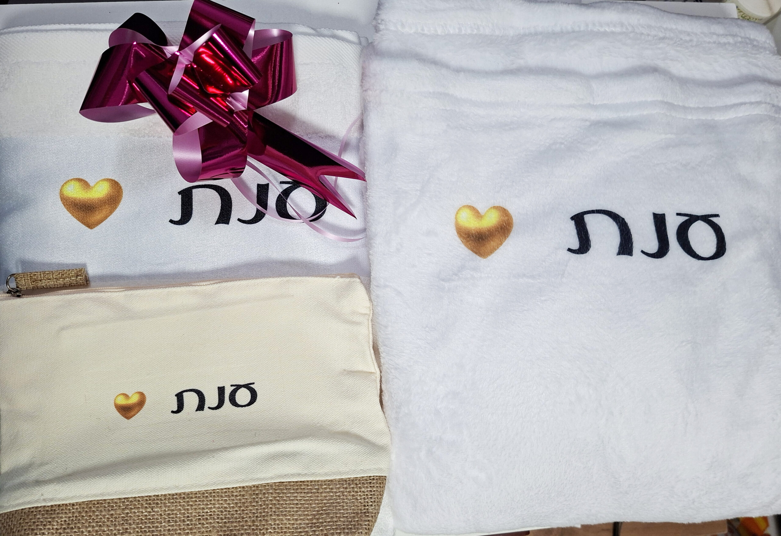 מארז מגבת רחצה גדולה 100% כותנה + כירבולית רכה + תיק איפור קנבס/יוטה איכותי עבה עם בד בטנה פנימית / רוכסן חזק / תא אחד גודל 25 סמ גובה X 20 סמ רוחב X 5 ס"מ עומק
