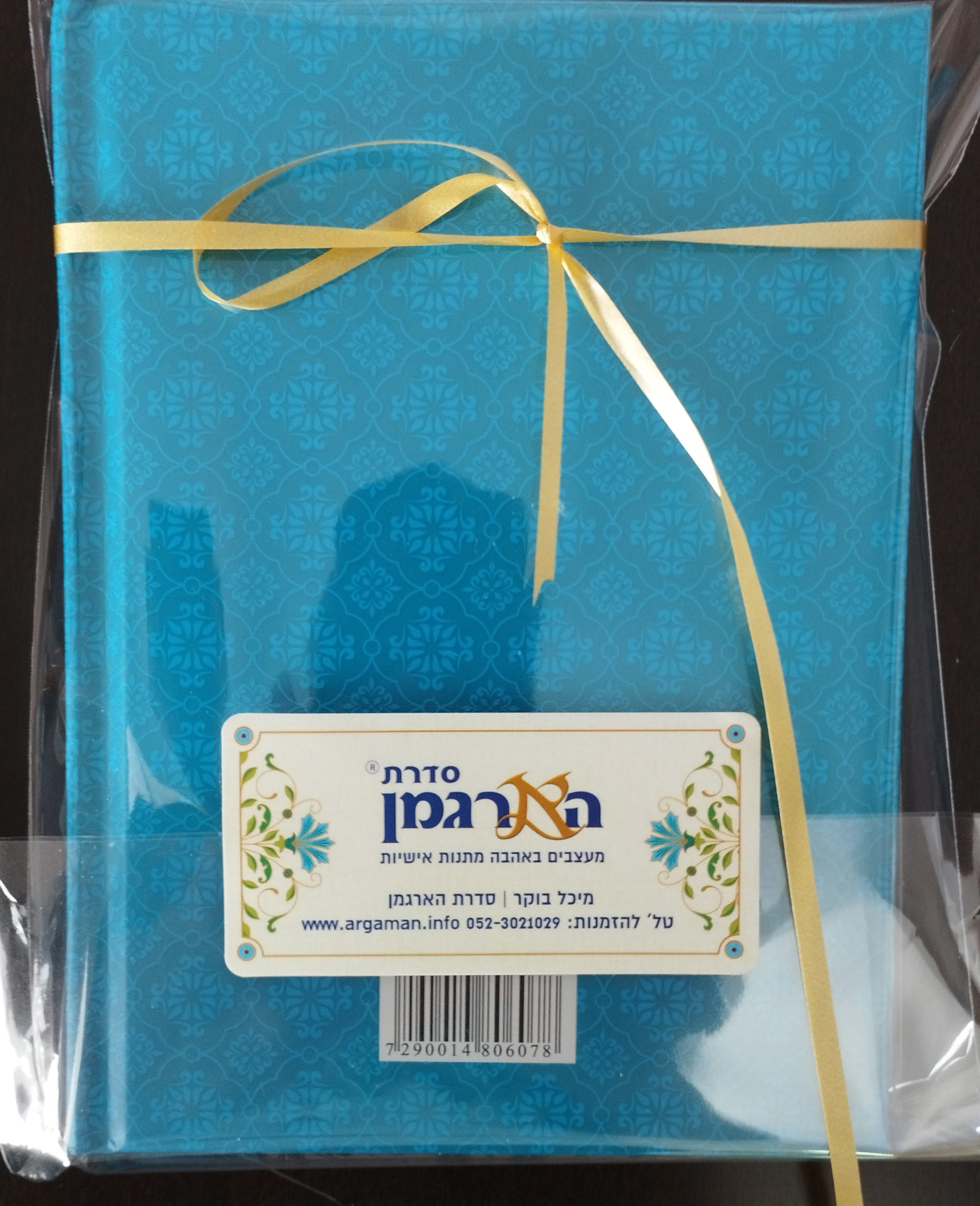 ספר עם כריכה קשה, עיטורי זהב, גודל 12X17 ס"מ, 156 עמודים.