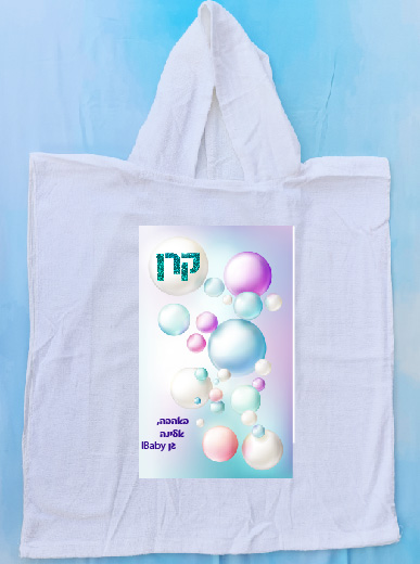 מגבת קפוצ'ון פונצ'ו 100% כותנה עם הדפסה, שם הילד/ה והקדשה מהגן