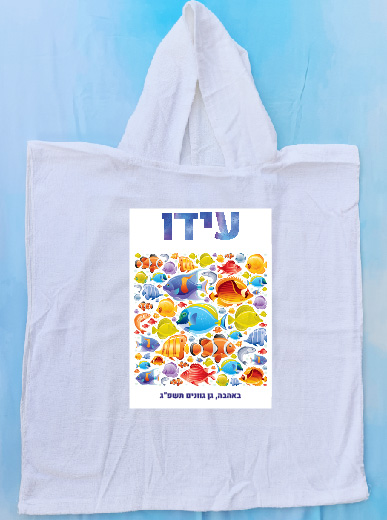 פונצ'ו קפוצ'ון מגבת מודפס עם שם הילד/ה