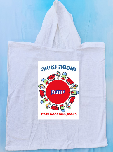 מגבת פונצ'ו 100% כותנה עם שם 38-42 שח