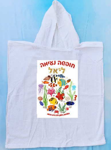 מגבת פונצ'ו 100% כותנה עם שם 38-42 שח