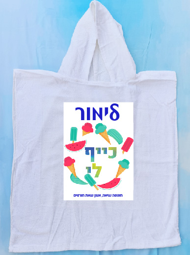 קפוצ'ון מגבת 100% כותנה עם הדפסה, שם הילד/ה והקדשה מהגן (הדפסה בגודל 4A)