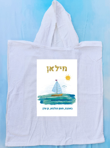 קפוצ'ון מגבת מודפס עם שם הילד