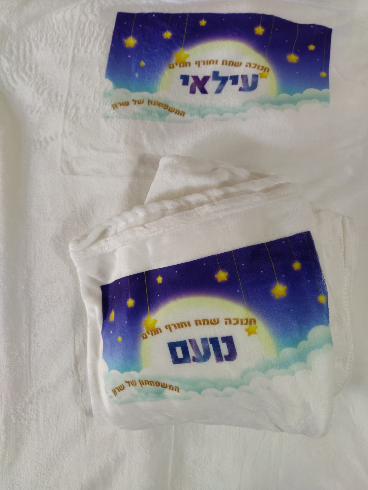 שמיכת פליז רכה לבנה עם שם 33 שח